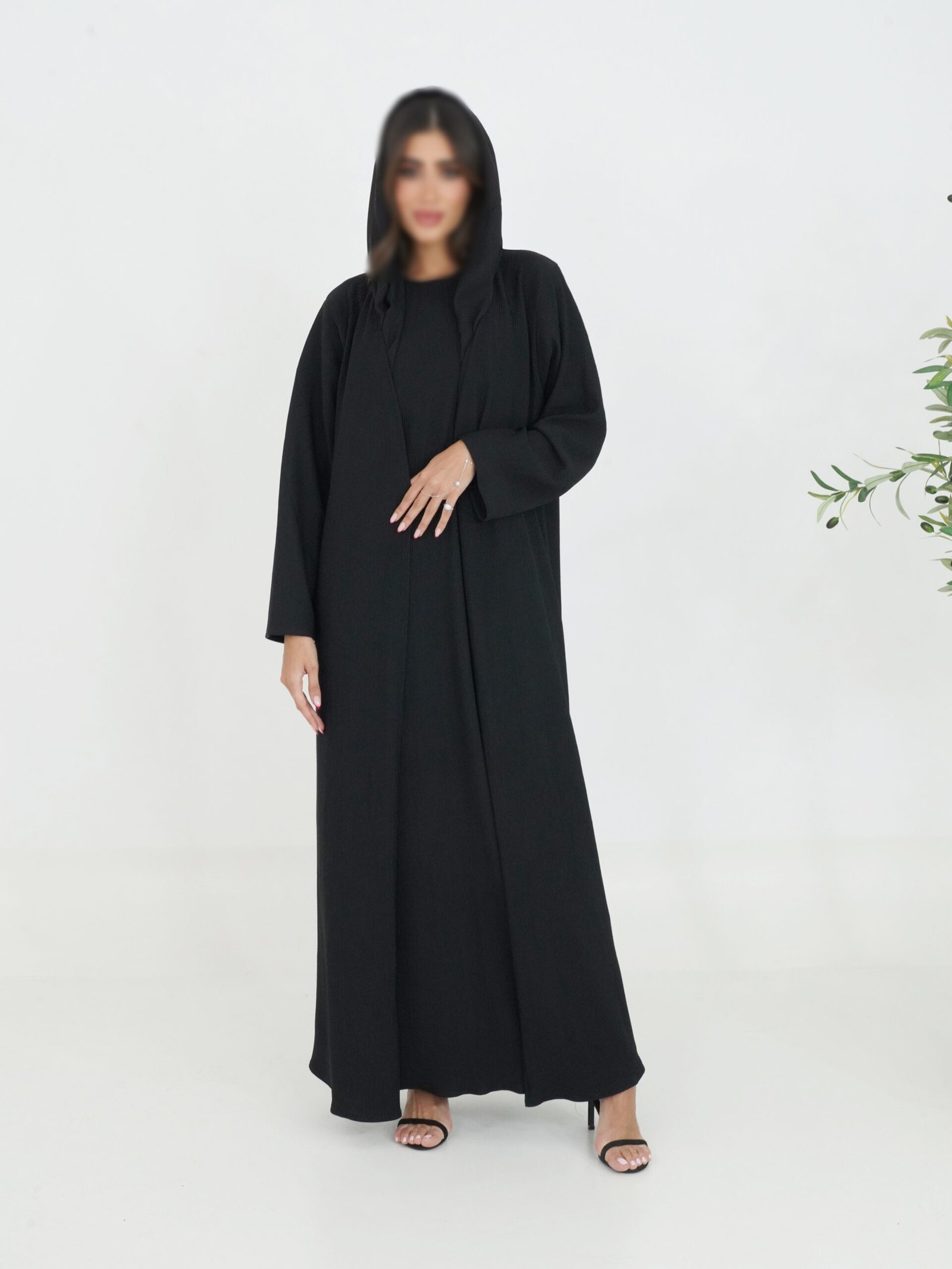 Plain Black Abaya with Hooded Design